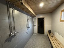 - Pesutilojen kuvaus: laatta/kaakeli, pk-liitäntä, wc, suihku, suihkuseinät, bidee, allaskaappi, peilikaappi, pyyhekuivain.