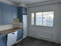 - laminaatti, maalatut seinät, jääkaappi/pakastin, keraaminen liesi, liesituuletin, astianpesukone