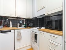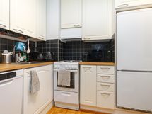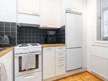 - Jääkaappipakastin, sähköliesi, liesituuletin, astianpesukone, kaapistot, kiinteät valaisimet.