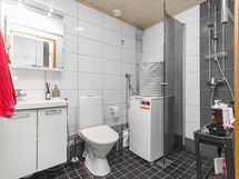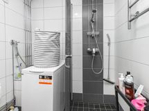 - Sähkökiuas, kylpyhuone, suihku, suihkuseinä, peilikaappi, allaskaappi, pesukoneliitäntä, kiinteät valaisimet.