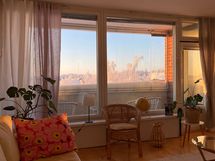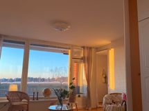 - Pienemmästä makuuhuoneesta Puijon urheilualueelle, olohuoneesta, parvekkeelta ja isosta makuuhuoneesta Puijonlaakson yli Sammakkolammen suuntaan, keittiöstä keskustan suuntaan talojen yli