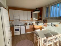 - Tilaa isolle ruokapöydälle, Paljon kaappitilaa, Paljon työskentelytilaa, Laminaattitasot, Terästasot, Astianpesukone, Sähköliesi, Liesikupu, Jää-pakastinkaappi