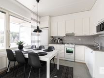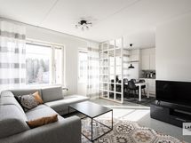 Tässä kodikkaassa täysin kalustetussa avarassa kodissa asuminen on viihtyisää. Asumismukavuutta lisää iso parveke ja erinomainen pohjaratkaisu. Vuodepaikkoja tässä kodissa on viidelle. Astiat ja tarvittavat kodinkoneet kuuluvat vakiovarusteisiin. Asuminen on vaivatonta, sillä hintaan sisältyvät vesi, sähkö, netti, loppusiivous, liinavaatteet ja autopaikka.