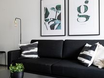 Asunnossa vuodesohva josta saa tarvittaessa kaksi nukkumapaikkaa lisää.