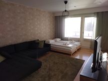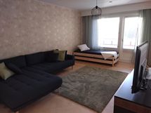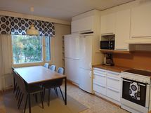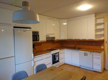 - Paljon kaappitilaa, Paljon työskentelytilaa, Tilaa isolle ruokapöydälle, Laminaattitasot, Astianpesukone, Pesukoneliitos, Keraaminen liesi, Liesituuletin, Jää-pakastinkaappi