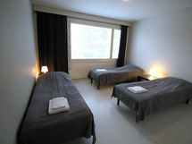 This bright four-room apartment in Lahti offers comfortable accommodation for up to six guests. The apartment features three bedrooms, a spacious living room, a separate kitchen, and a bathroom. The kitchen is equipped with an oven, dishwasher, freezer, refrigerator, and microwave, making cooking effortless. The living room includes a sofa, armchair, and television for relaxation. A washing machine and cleaning supplies are available for your use, and the balcony provides additional space and fresh air. The location offers good transport connections throughout Lahti, and the city center is easily accessible on foot.