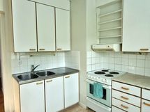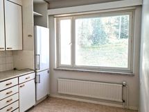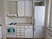 - Keittiön varusteet: Jääkaappipakastin, uuni, liesi ja liesituuletin. Liesi: Valurautaliesi. Työtason materiaali: Laminaatti. Valoisa, peruskuntoinen keittiö, johon mahtuu mukavasti ruokaryhmä,.