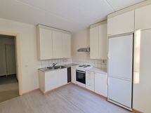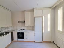 - Keittiön varusteet: Jääkaappi, erillinen pakastin, liesituuletin ja liesi. Liesi: Valurautaliesi. Työtason materiaali: Laminaatti.