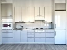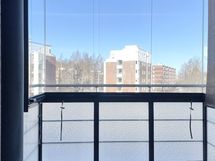 Heti vapaa valoisa asunto, jossa huomioitu apuvälineitä käyttävät asukkaat. Wc:ssä istuintuki ja keittiön kaapistot matalemmalla. Lasitettu parveke ja lattiat laminaattia.