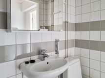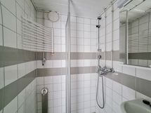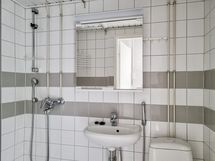 - Pesutilojen varusteet: Suihku, pesukoneliitäntä, wc-istuin, suihkuseinä, pesuallas ja peilikaappi.