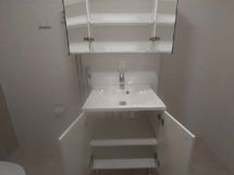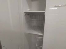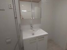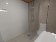 Suihku, Pesukonevalmius, Laattaseinä, Laattalattia, Peilikaappi, Allaskaappi, Lattialämmitys