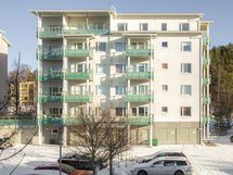 Kolmannen kerroksen saunallinen ja parvekkeellinen kaksio. Tilaa on hyvin yhdelle tai kahdelle asukkaalle.