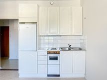 - valkoiset kaapit, 2-levyliesi, jääkaappi