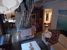 Vuokralle tulossa lapsiperheystävälliseltä sijainnilta 3h+K+S -asunto hyvin hoidetusta taloyhtiöstä. Iso yläparvi (lattia-ala tuon alakerran 73,5 neliön lisäksi 11,5 neliötä pohjapiirroksen mukaan), joka toimii myös tarvittaessa makuu- tai vierashuoneena (jenkkisängyn saa hyvin vietyä portaita pitkin). Yläkerrasta myös pääsy isolle vintille.