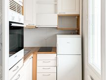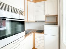 Liesi: erillisuuni, liesitaso. Kylmäsäilytys: jenkkikaappi. Varustus: liesituuletin.