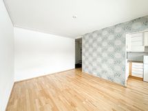 Lattia: Keittiössä: laminaatti. Pesutiloissa: laatta. Olohuoneessa: laminaatti. Seinät: Keittiössä: maalattu. Pesutiloissa: kaakeli. Olohuoneessa: maalattu, tapetti.
