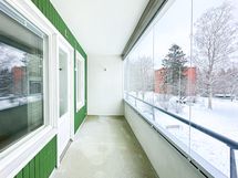 Tässä talon toisen kerroksen kodissa on tilava ja toimiva pohjaratkaisu. Neliöt on käytetty tehokkaasti ja suuri lasitettu parveke tuo lisätilan tuntua ja avaruutta. Tilava keittokomero, jossa on kaikki tarvittava ruoanlaittoon. Vaatehuone ja eteisen kaapistot ratkaisevat säilytysongelmat. Kaunis ja nykypäiväinen kylpyhuone, jossa luonnollisesti liitäntä omalle pyykinpesukoneelle.