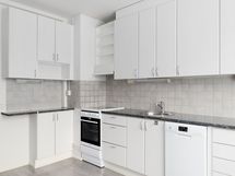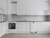 - Tilaa isolle ruokapöydälle, Suuri tiskipöytä, Laminaattitasot, Astianpesukone, Keraaminen liesi, Liesituuletin, Liesi tai uuni erikseen, Jää-pakastinkaappi, Paljon kaappitilaa, Paljon työskentelytilaa