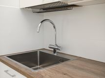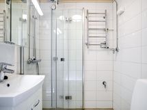 Keittiössä on käytännöllinen siivouskomero, ja kylpyhuoneessa pääset nauttimaan arjen luksuksesta sadesuihkun alla.