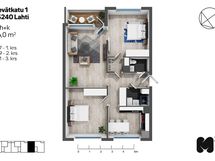 Asuntoja on yhteensä 72. Ne ovat kooltaan 34-90,5 m2. Talossa on yksiöitä, kaksioita ja suurempia kolmen ja neljän huoneen asuntoja niin yksin asuvien, pariskuntien kuin lapsiperheidenkin tarpeisiin. Myös lemmikit ovat tervetulleita.