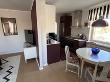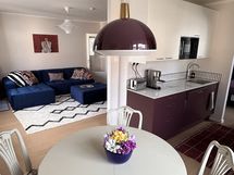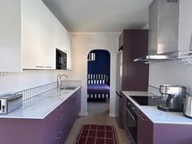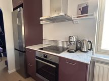 - Tilaa isolle ruokapöydälle, Kivitasot, Astianpesukone, Integroidut koneet, Induktioliesi, Jääkaappi, Pakastin, Liesi tai uuni erikseen, Liesikupu, Paljon kaappitilaa, Paljon työskentelytilaa, Halogeenivalot