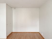 Alkovi tarjoaa luonnollisen paikan sängylle ja siellä on myös kaappitilaa arjen sujuvuutta varten.
