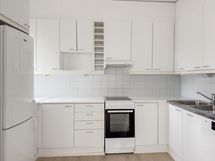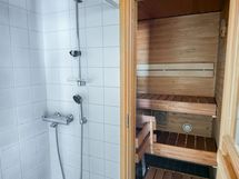 Keittiön raikas valkoinen sävymaailma ja ajattomat kaapistot tuovat kokonaisuuteen tyylikkään ilmeen, kun taas kokonaan laatoitettu kylpyhuone lisää arjen helppoutta ja tarjoaa paikan pyykinpesukoneelle. Oman saunan lempeät löylyt sekä lasitettu parveke kutsuvat rentoutumaan vuoden jokaisena päivänä.