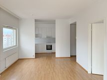 Keittiön raikas valkoinen sävymaailma ja ajattomat kaapistot tuovat kokonaisuuteen tyylikkään ilmeen, kun taas kokonaan laatoitettu kylpyhuone lisää arjen helppoutta ja tarjoaa paikan pyykinpesukoneelle. Oman saunan lempeät löylyt sekä lasitettu parveke kutsuvat rentoutumaan vuoden jokaisena päivänä.