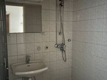 Tilavassa kylpyhuoneessa liitäntä pyykinpesukoneelle.