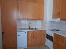 Varusteet: Jääkaappipakastin. Työtaso: Laminaattitaso. Liesi: Sähköliesi. tilava keittiö, mahtuu ruokapöytä