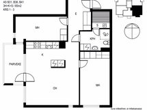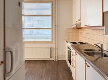 Kodissa on laminaattilattia ja seinät maalatut. Keittiön kaapistot ovat valkoiset puureunalistoin ja samaan sävyyn puiset vetimet. Varusteisiin kuuluu jääpakastinkaappi sekä tilavaraus on astianpesukoneelle. Ruokapöydän saat näppärästi aseteltua ikkunan eteen. Kylpyhuoneessa on mahdollisuus pyykinpesukoneelle.