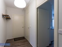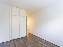 Makuuhuoneessa kiinteitä kaapistoja säilytystä varten. Lisäksi eteisestä löytyy erillinen vaatehuone.