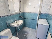 Kylpyhuoneesta löytyy hyvin tilaa pyykinpesukoneelle. Asunnossa valmiiksi pyykinpesukone vuokralaisen käyttöön tai voit tuoda tarvittaessa oman koneen.