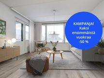 KAMPANJA: Kahden ensimmäisen kuun vuokra -50%. Tältä ajalta maksetaan käyttökorvaukset normaalisti. Kampanja voimassa toistaiseksi ja koskee vain uusia asukkaita. Sopimuksen minimi asumisaika on 12kk.