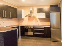 - Liesi: keraaminen. Työtasot: laminaatti. Kylmäsäilytys: jääkaappi/pakastin. Varustus: astianpesukone, liesituuletin / suodatin.