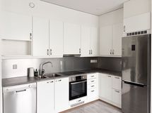 Keittiössä on modernit rosteriset kodinkoneet ja arkea helpottava astianpesukone. Säilytystilaa löytyy makuuhuoneen kaapistosta ja eteisen komeroista. Tyylikkäästi laatoitettuun kylpyhuoneeseen on mahdollista asentaa pyykinpesukone.