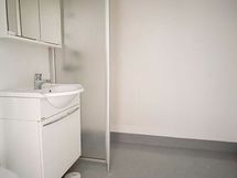 Kylpyhuoneessa on vaaleat seinät, lattia on harmaata laattaa. Suihkuseinä on kätevä. Kaappitilaa on peilikaapissa ja allaskaapissa. Rättipatterin päälle saa pyyheliinan kuivumaan. Pyykinpesukoneelle on liitännät.