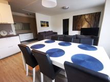 - Tilaa isolle ruokapöydälle, Paljon kaappitilaa, Paljon työskentelytilaa, Laminaattitasot, Astianpesukone, Integroidut koneet, Induktioliesi, Liesituuletin, Liesi tai uuni erikseen, Jää-pakastinkaappi