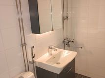 - Pesutilojen varusteet: WC-istuin, suihku, pesukoneliitäntä ja pesuallas. Pesutilojen kuvaus: -Suihku, wc-istuin, käsienpesuallas, pk-liitäntä