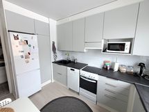 - Liesi: keraaminen. Kylmäsäilytys: jääkaappi/pakastin. Varustus: astianpesukone, kiinteät valaisimet, liesituuletin / suodatin. Keittiö remontoitu vuonna 2021.