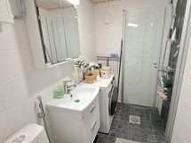 - Pesutilojen kuvaus: Kylpyhuone remontoitu putkiremontin yhteydessä 2021. Varustus: suihkuseinä, pesukoneliitäntä, lattialämmitys, wc-istuin, suihku, peilikaappi, kiinteät valaisimet.
