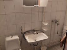 Pesutilojen kuvaus: sauna on tehty huoneistoon jälkikäteen.
