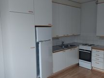 Lattia: Keittiössä: laminaatti. Olohuoneessa: laminaatti. Seinät: Keittiössä: maalattu.