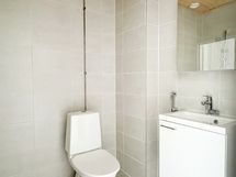 Varustus: suihkuseinä, pesukoneliitäntä, wc-istuin, suihku.