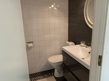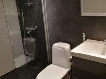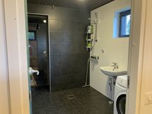- Suihku, Suihkuseinä, Useita suihkuja, Pesukonevalmius, Allaskaappi, Halogeenivalot, Laattaseinä, Avattava ikkuna, Erillinen WC, Lattialämmitys