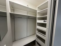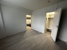 Makuuhuoneessa on hyvin tilaa ja säilytysratkaisuja täydentää erillinen vaatehuone. Kaikki seinät on juuri maalattu, joten pinnat ovat siistit ja raikkaat.