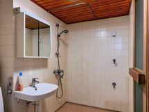 - Sauna: sähkökiuas. Kylpyhuone: suihku, peilikaappi, pesukoneliitäntä, pesuallas, wc-istuin.