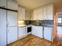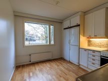 - Jääkaappi, pakastin, keraaminen liesi, astianpesukoneliitäntä, kaapistot