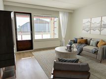 Kodin lattiassa on laminaatti ja seinät ovat maalatut. Ikkunoissa on sälekaihtimet. Keittiössä on harmaat kaapinovet ohuella puureunuksella. Keittiön ikkunan eteen on näppärä sijoittaa ruokailuryhmä. Eteisestä löytyy reilusti kaappeja ja lisäksi erillinen vaatehuone. Makuuhuone on tilava. Olohuoneesta on pääsy asunnon lasitetulle parvekkeelle.