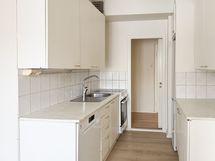 Huoneiston lattiamateriaalina on kaunis valkokuullettu laminaatti ja seinät vaalealla maalipinnalla. Todella ison olohuoneen ansiosta vain mielikuvitus on rajana kodin sisustamisessa. Toisessa makuuhuoneessa oleva vaatehuone helpottaa arkea. Vaalean keittiön varusteisiin kuuluvat jääpakastinkaappi sekä astianpesukone. Laatoitetussa kylpyhuoneessa on tilavaraus pyykinpesukoneelle. Pyykkihuolto onnistuu myös alakerran maksuttomassa pyykkituvassa ja kuivaushuoneessa, joten välttämättä et tarvitse omaa pyykinpesukonetta.
